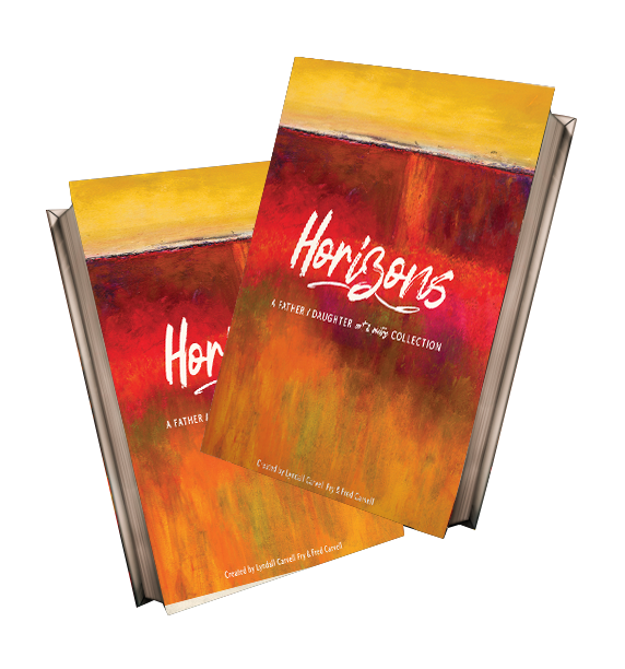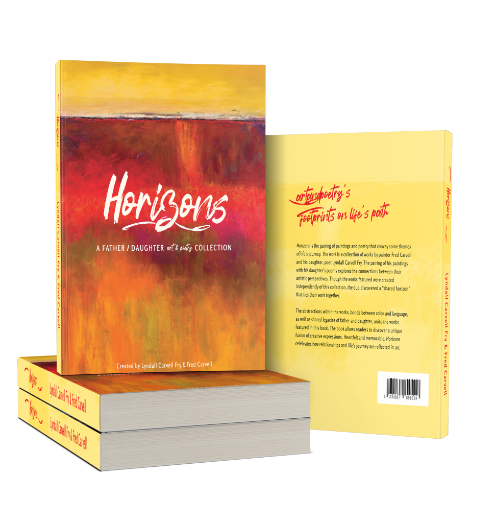 Horizons is much more than a collection of pages—it’s a heartfelt collaboration between painter Fred Carvell and his daughter, poet Lyndall Carvell Fry. With each turn, Fred’s vivid abstract landscapes and Lyndall’s reflective poetry come together to reveal those quiet moments where color, language, and legacy intersect.